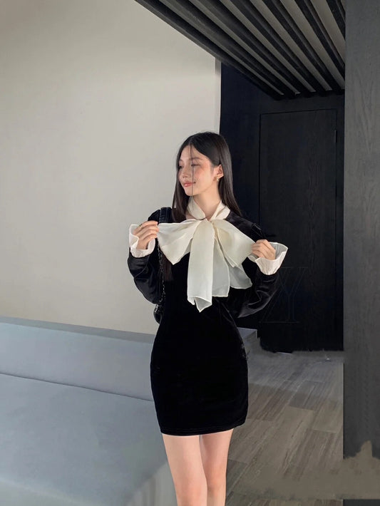 Contrast Tie-Waist Knit Dress